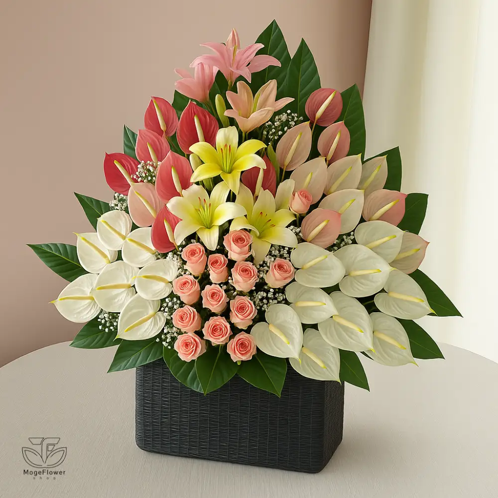 آنتوریوم سفید، صورتی و قرمز: ۲۲ شاخه